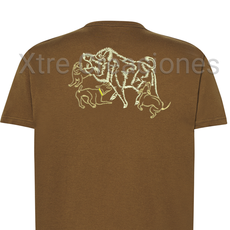 Camiseta bordado agarre teckel jabali
