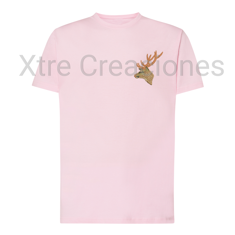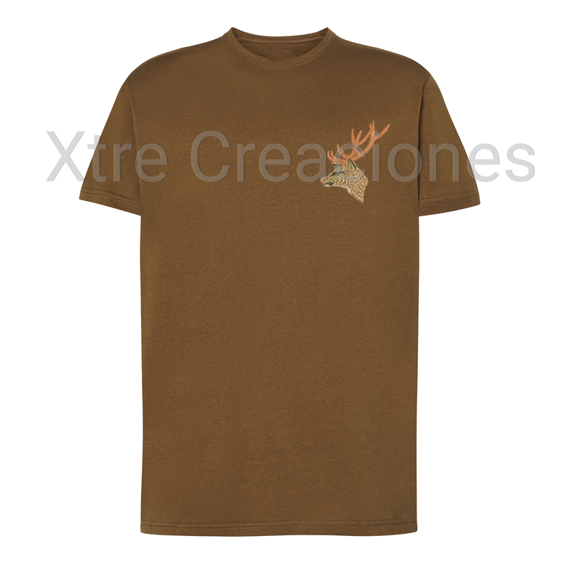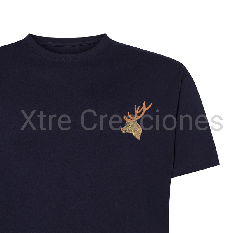 Camiseta bordado cabeza ciervo a color