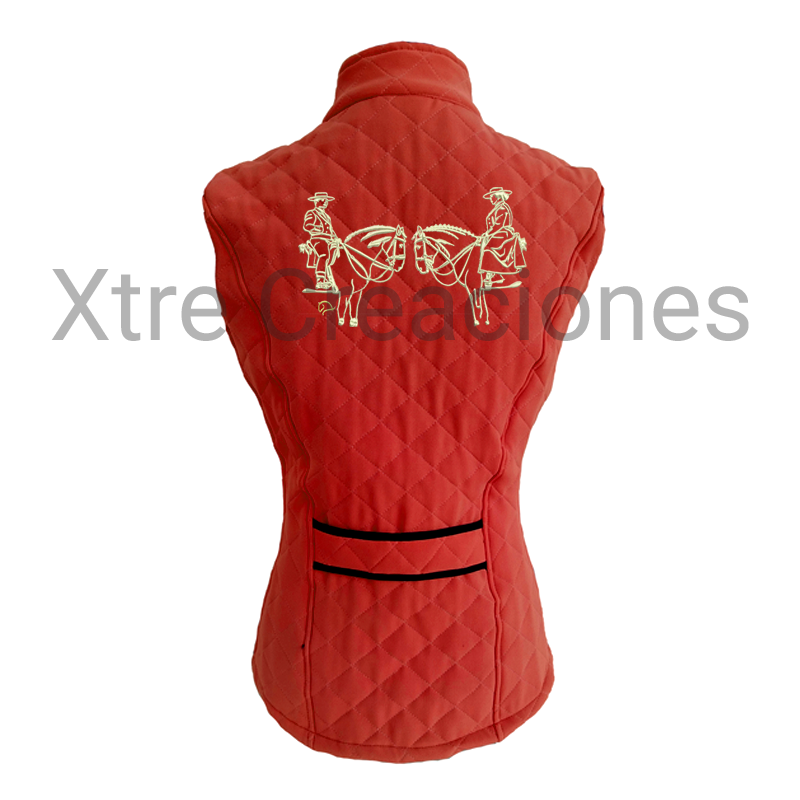 Chaleco bordado caballos jinete y amazona