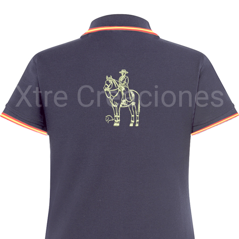 Polo bordado caballo lusitano amazona montura portuguesa