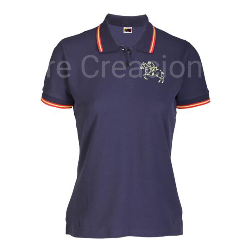 Polo mujer bordado caballo salto y jinete
