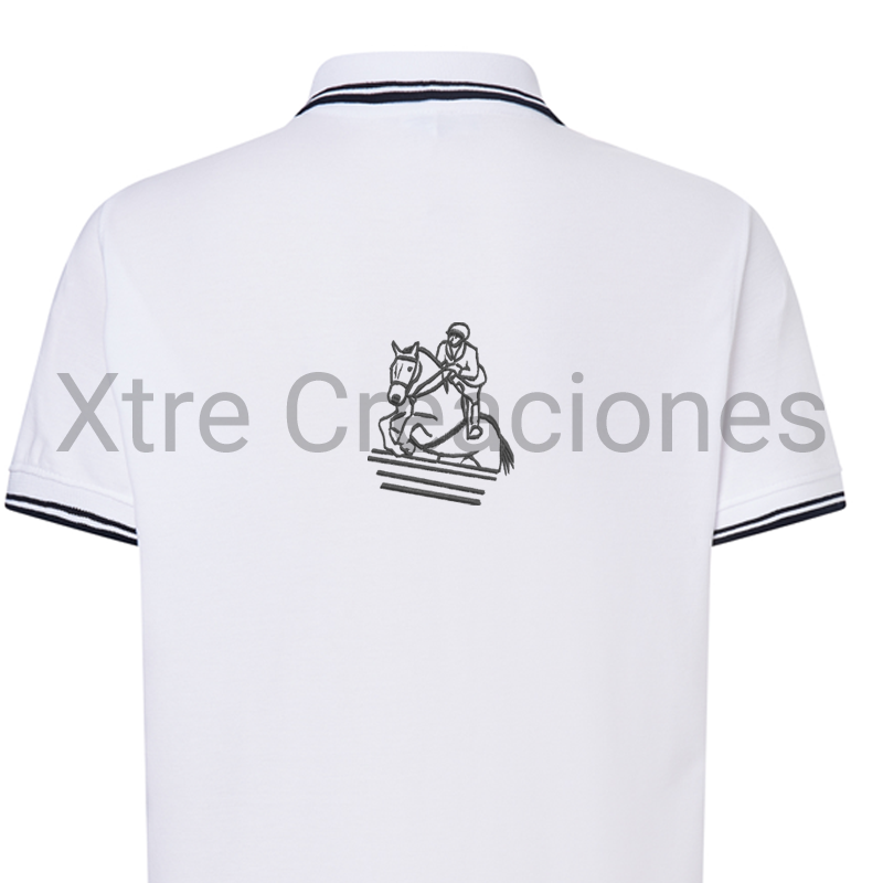 Polo bordado caballo y jinete salto