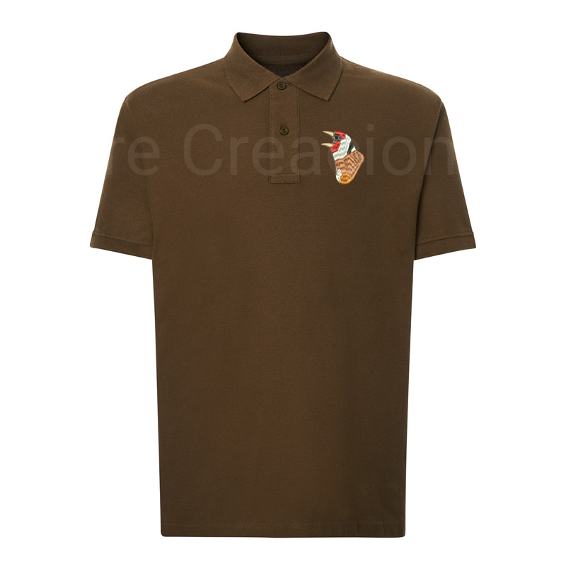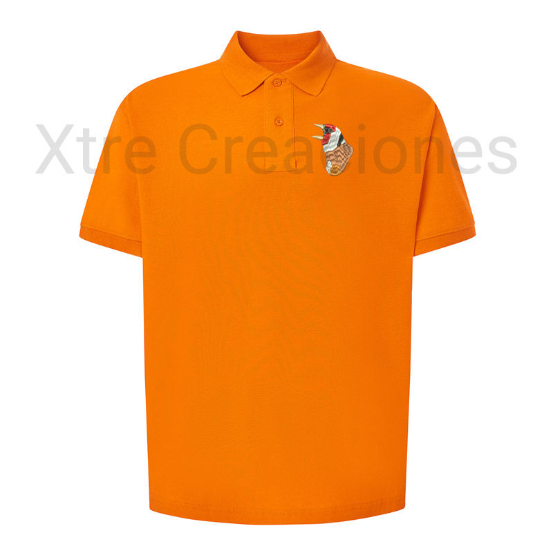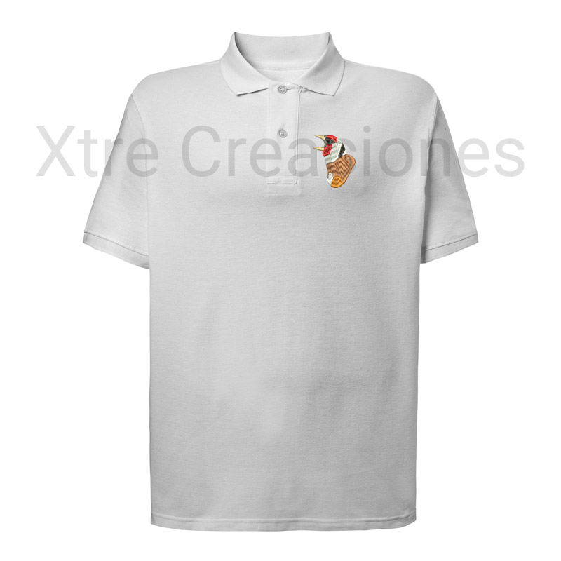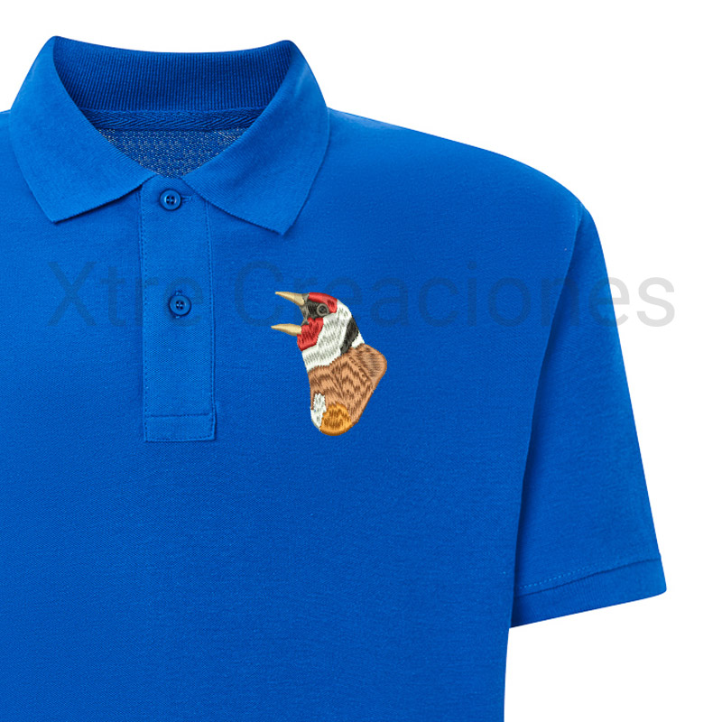 Polo bordado cabeza jilguero cantando